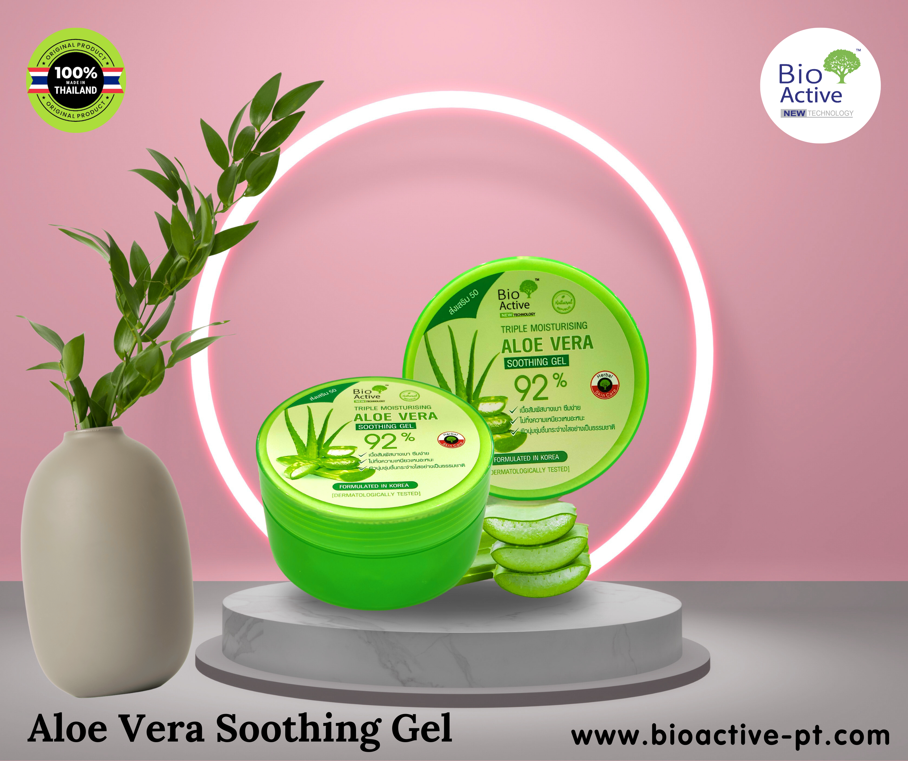 Bio Active Aloe Vera Soothing Gel. Enriched with pure aloe vera, this lightweight gel calms irritated skin, reduces redness, and restores moisture for a fresh, glowing complexion. Perfect for all skin types. Shop now for healthy, nourished skin!