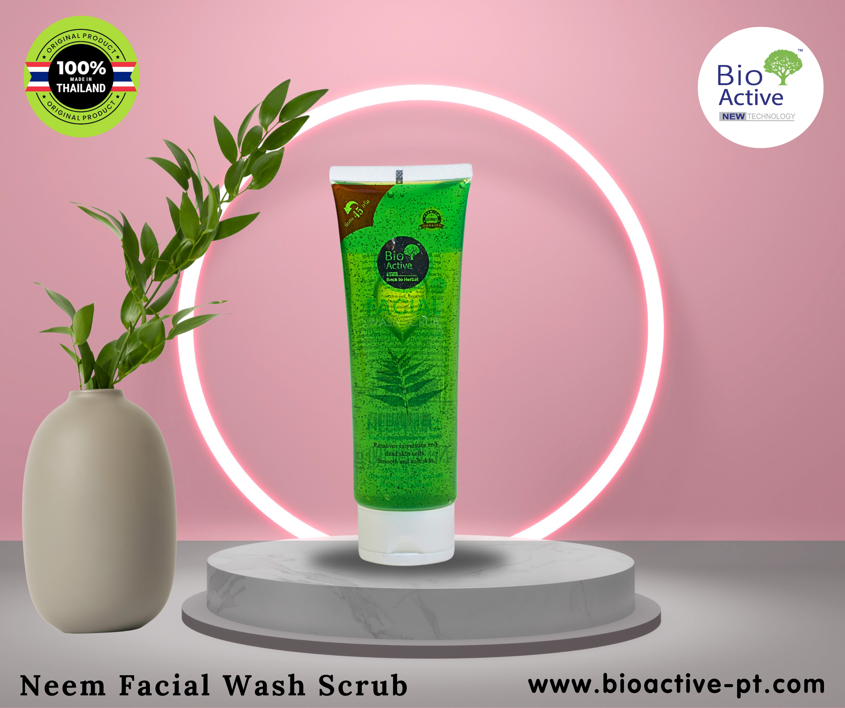 Bio Active Neem Facial Wash Scrub Deep cleanses, exfoliates, and purifies with the power of neem. Removes dirt, excess oil, and dead skin cells for a refreshed, clear, and glowing complexion. Suitable for all skin types.