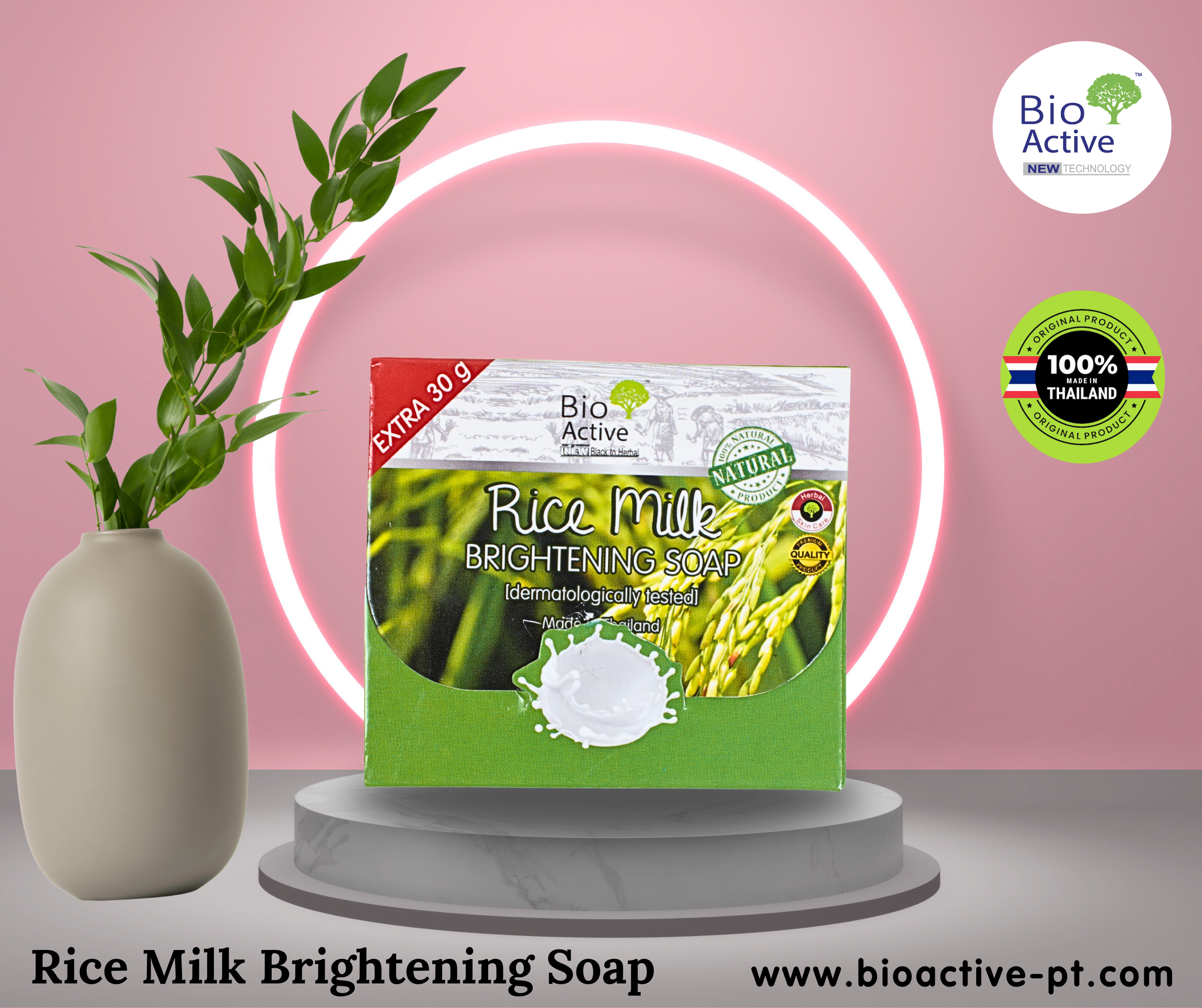 Experience the natural goodness of Bio Active Rice Milk Soap enriched with rice milk, vitamins, and skin-loving nutrients for deep hydration, brightening, and a healthy glow. Perfect for all skin types. Shop now for radiant, nourished skin!
