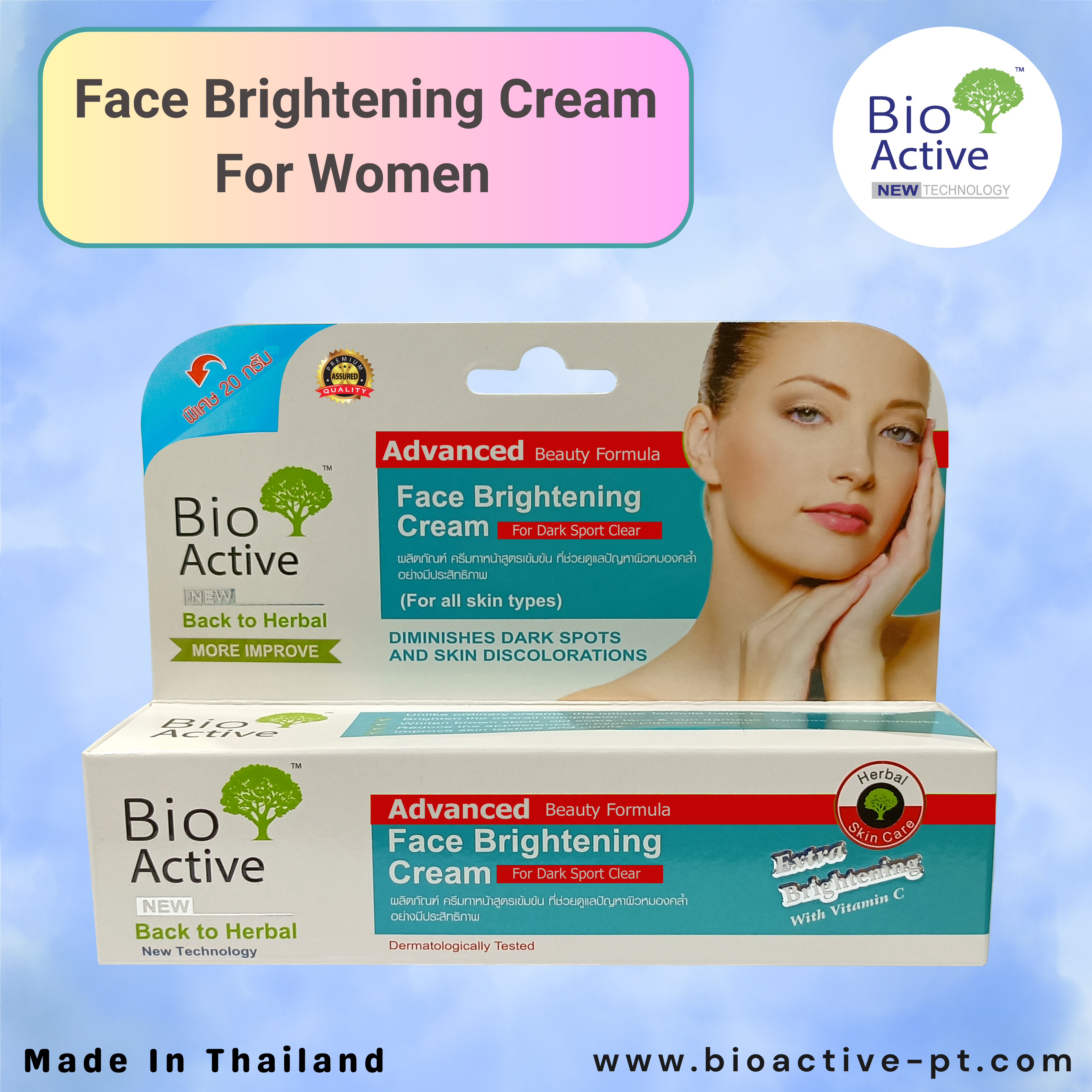 Bio Active Face Brightening Cream for Women is a powerful formula that reduces dark spots, evens skin tone, and enhances radiance. Enriched with natural ingredients, it provides deep hydration while brightening and revitalizing your complexion. Ideal for daily use to achieve a luminous, youthful glow.